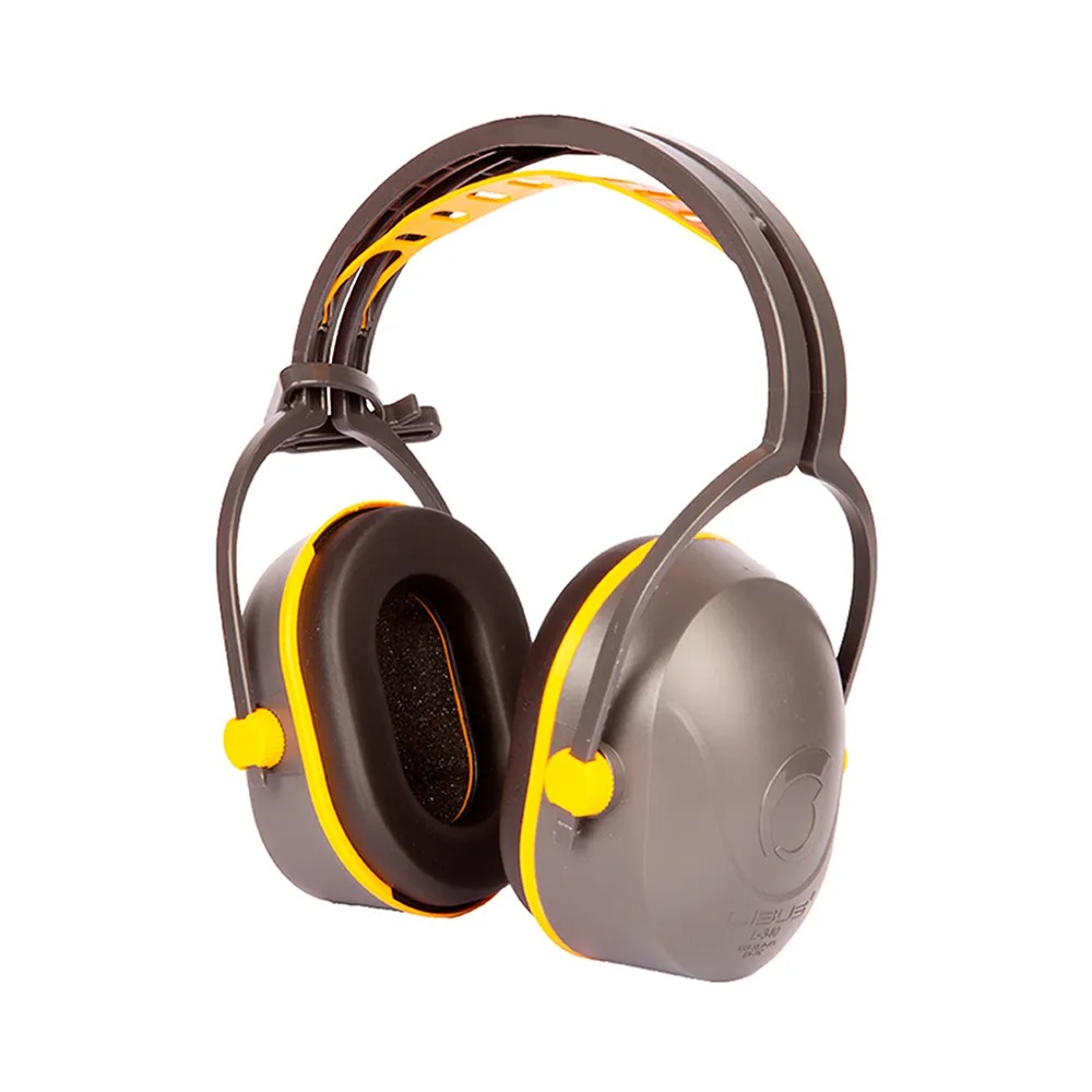 Concha com abafadores acolchoados, confortáveis mesmo em longas horas de trabalho