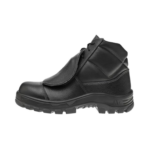 Possui colarinho e lingueta soft acolchoados, com forração Air Comfort, transpirável, fechamento em cadarço e protetor externo de metatarso