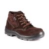 Bota de segurança com fechamento em cadarço confeccionado em couro Nobuck, com cano acolchoado em camurça e forração interna na gáspea. Biqueira composite e forro do cano em nylon dublado.