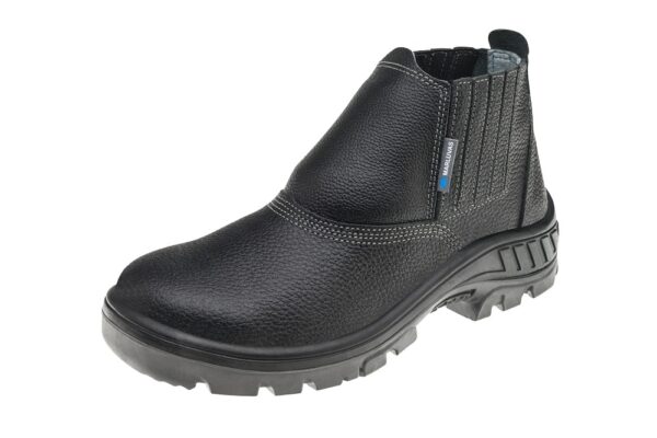 Bota de segurança em couro, ideal para profissionais da construção civil ou prestadores de serviços. Este calçado tem fechamento em elástico nas laterais, biqueira de polipropileno ou aço, solado isolante em PU bidensidade, injetado diretamente no cabedal, e palmilha de montagem em poliéster resinado. A Marluvas oferece este produto também com palmilha de aço.