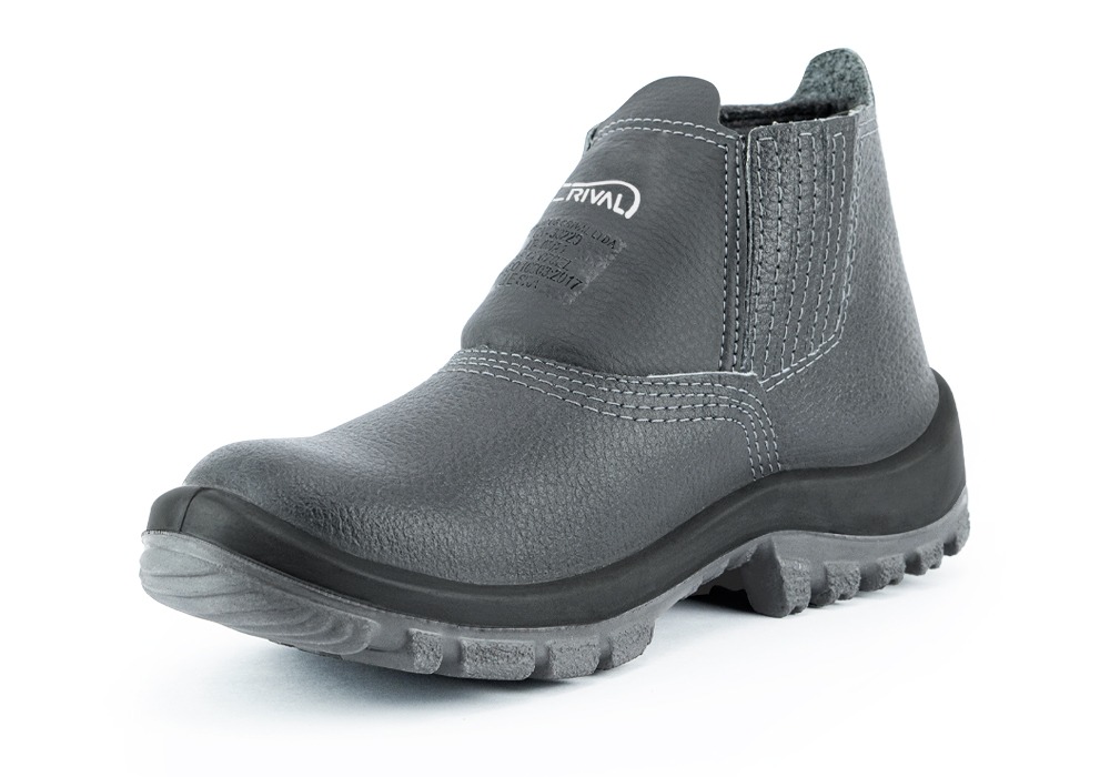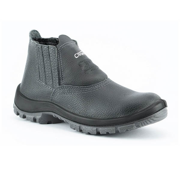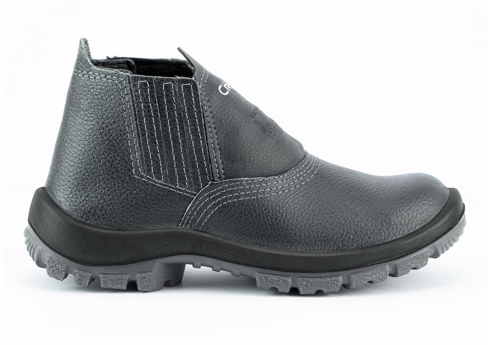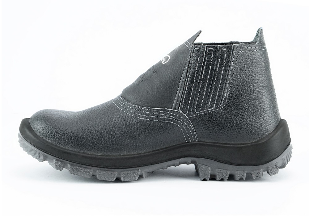 Calçado ocupacional tipo botina, confeccionado em couro, cor preta, fechamento em elástico, palmilha de