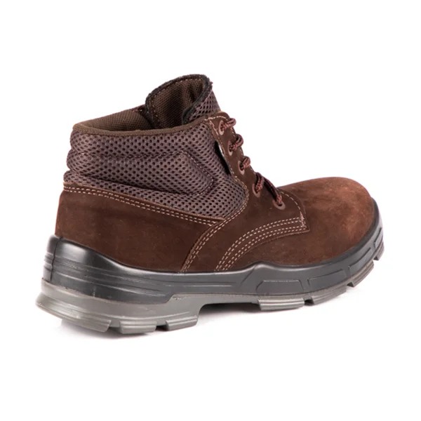 Bota ocupacional com fechamento em cadarço confeccionada em nobuck, cano acolchoado, forração interna da gáspea, biqueira plástica conformada, sobrepalmilha de EVA 4MM, tecnologia Airtech e solado poliuretano (PU) bidensidade.