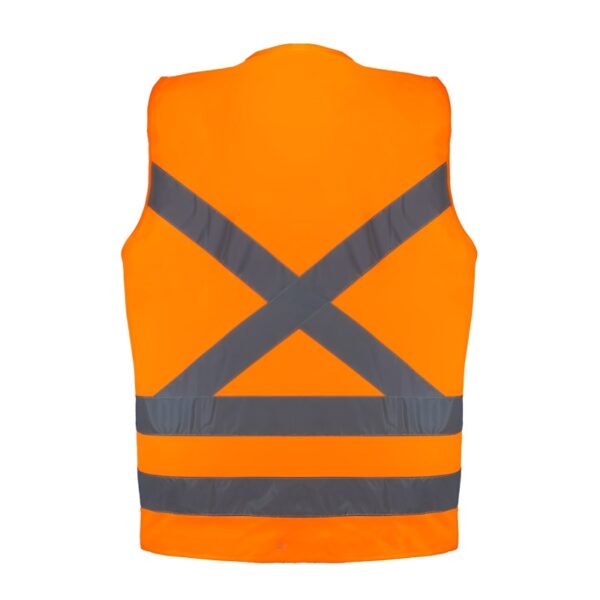 Confeccionado em tecido de poliéster fluorescente na cor Laranja Com faixas reflevas e fechamento frontal através de zíper Fornece visibilidade tanto no uso diurno como no uso noturno Indicado para: Trabalhadores na construção civil Ambientes com baixa luminosidade Tráfego intenso de veículos