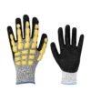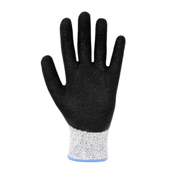 Luva de segurança confeccionada em fibras sintéticas, revestimento da face palmar e ponta dos dedos em látex corrugado