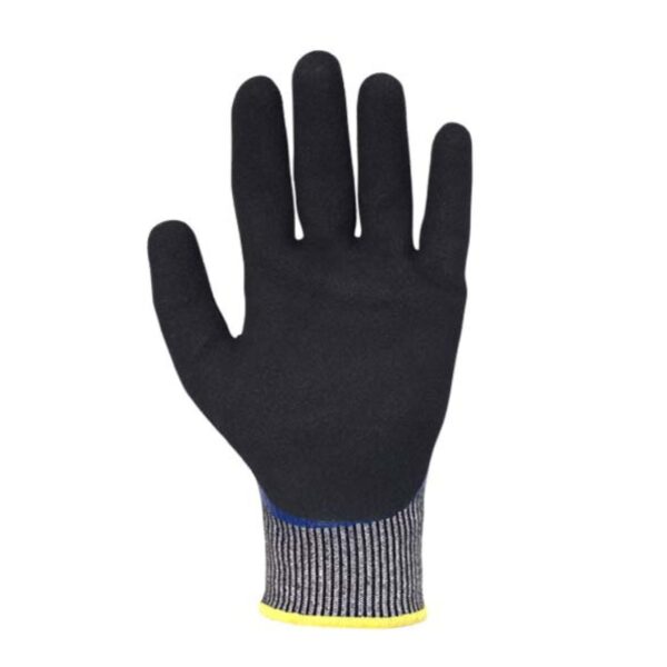 Luva de Segurança confeccionada em fibras sintéticas, polietileno de alto peso molecular (HPPE), 13 gauge, revestida totalmente em nitrilica lisa na palma da mão