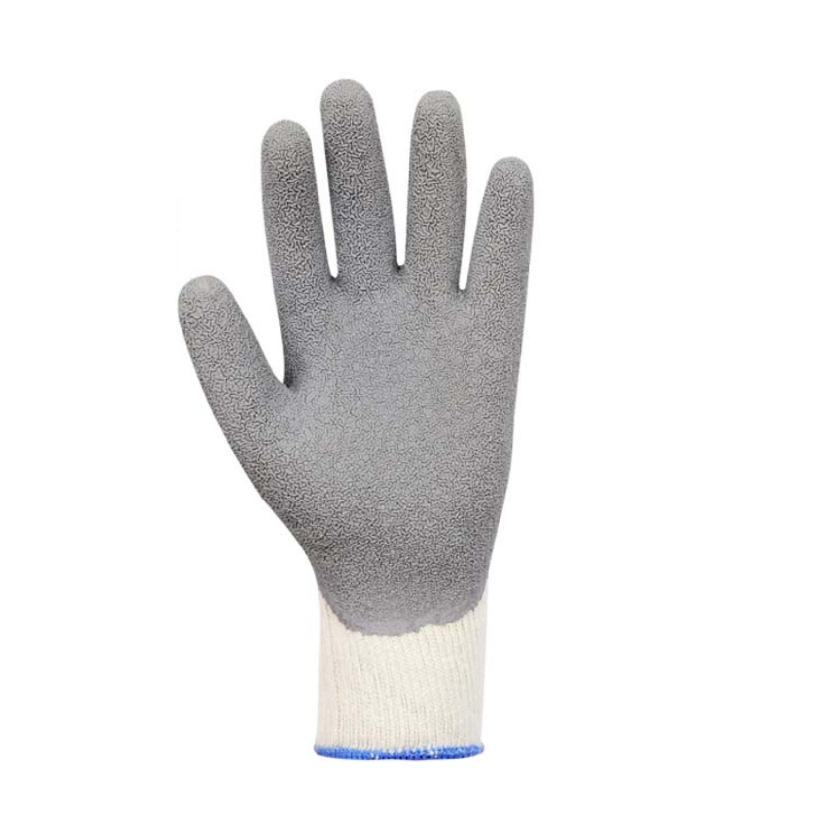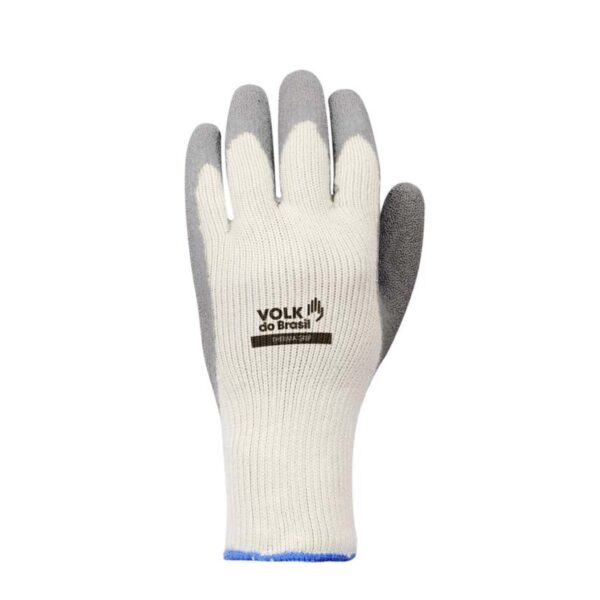 Luva de segurança confeccionada em fibra acrílica e fibra sintética, revestida com látex corrugado na face palmar e dedo