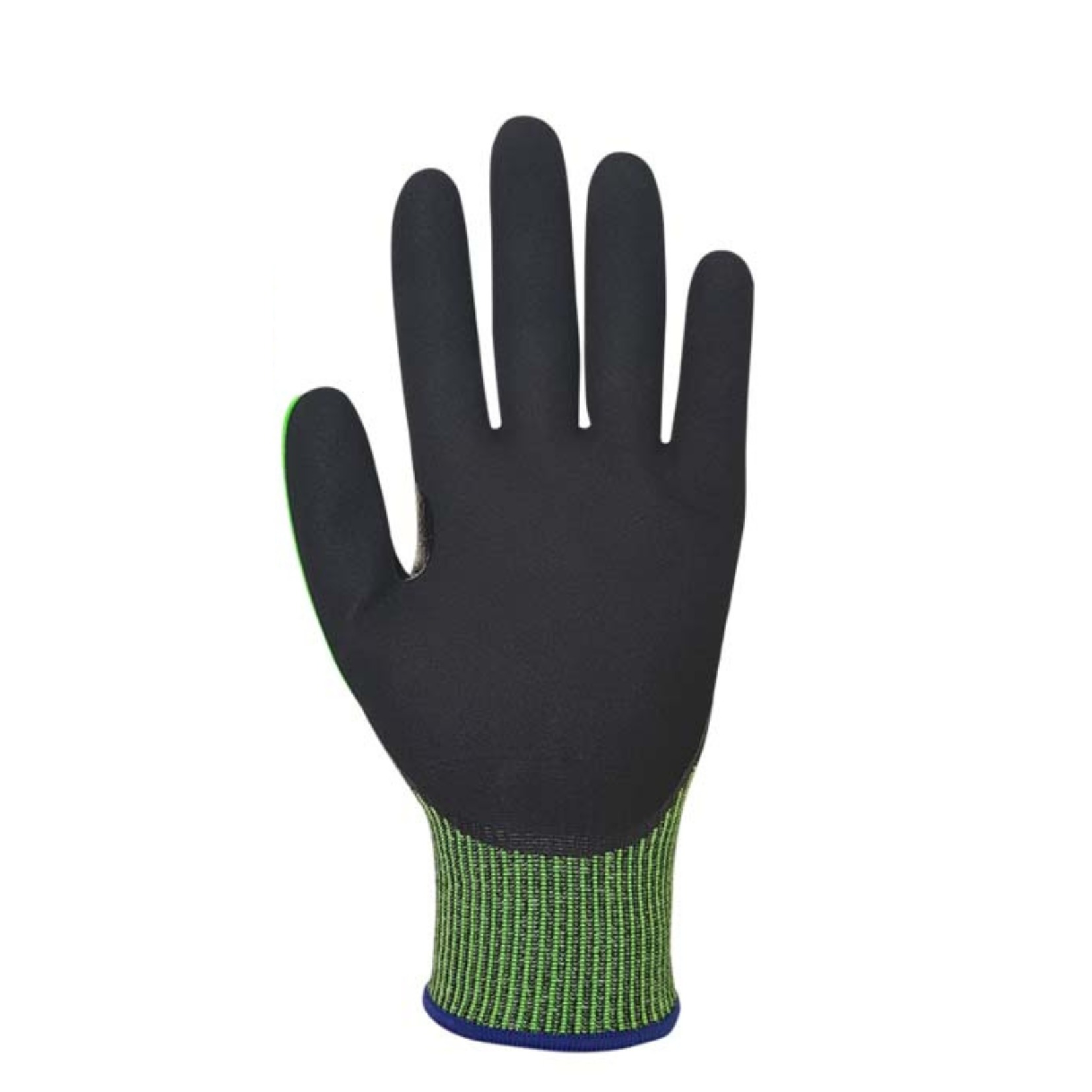 Luva de segurança confeccionada em fibras sintéticas e HPPE, 13 gauge, com banho nitrílico tipo Sandy na região palmar e ponta dos dedos