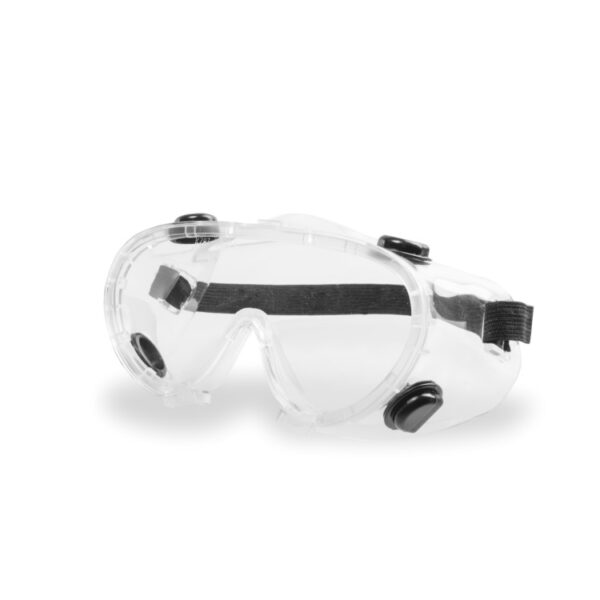 Óculos de proteção, modelo ampla-visão constituídos de armação confeccionada em peça única de PVC flexível transparente