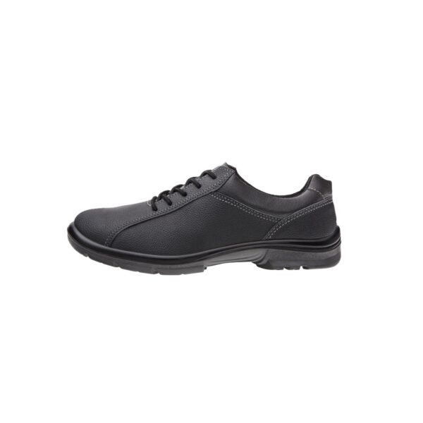 Tênis ocupacional confeccionado em couro na cor preta, ideal para áreas administrativas e áreas de serviços gerais