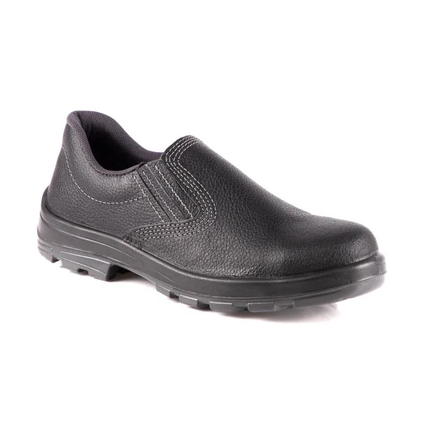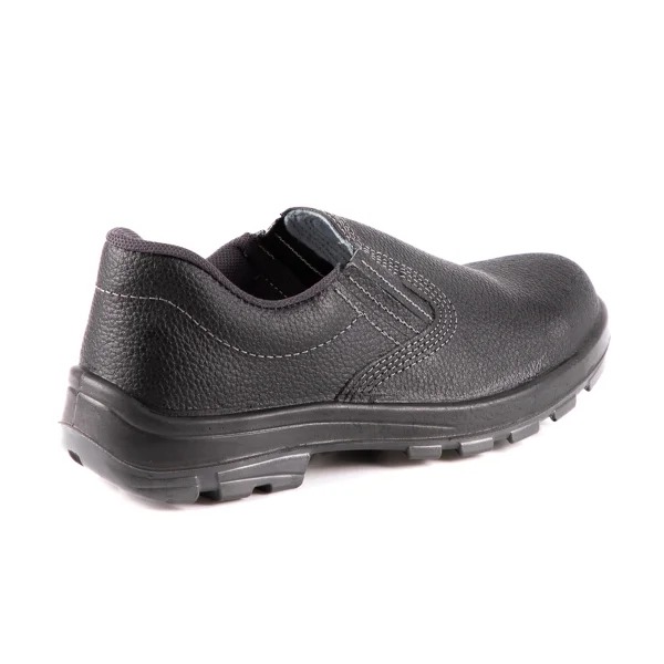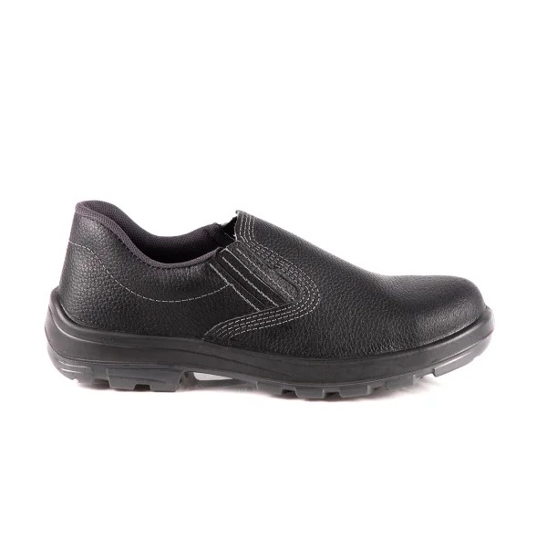 Sapato ocupacional com fechamento em elástico lateral recoberto confeccionado em couro estampa relax, com colarinho acolchoado, forração interna da gáspea, biqueira plástica conformada e solado poliuretano (PU) bidensidade.