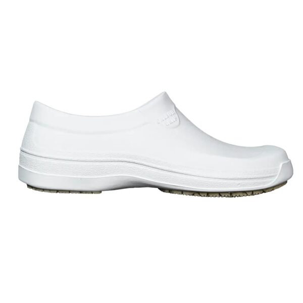 Calçado ocupacional, tipo sapato baixo, na cor branca, impermeável