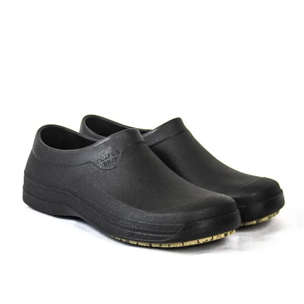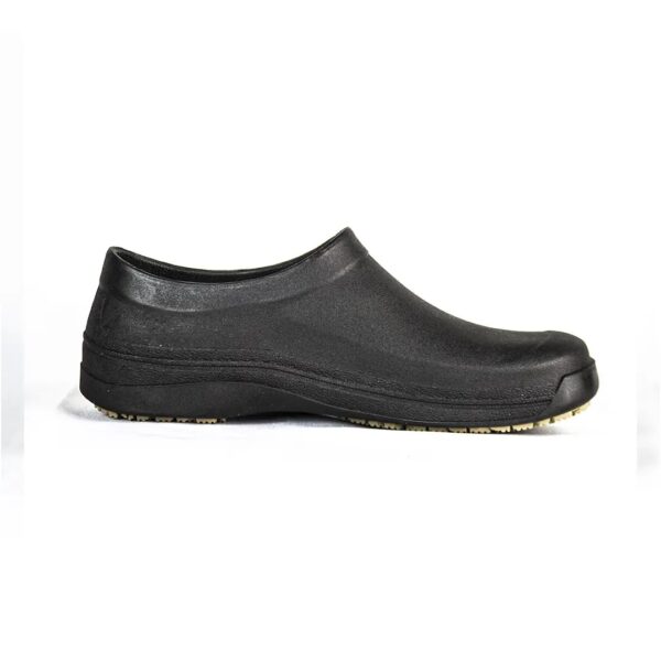 Calçado ocupacional, tipo sapato baixo, na cor preta, impermeável